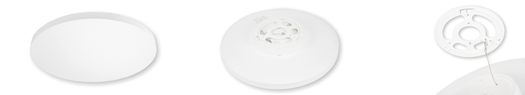Moderne LED Wand- und Deckenleuchte mit filigranem weißem Kunststoff Gehäuse. Die Leistung kann ebenso wie die Lichtfarbe (3000K/4000K/5700K) über zwei Schiebeschalter eingestellt werden. Dies ermöglicht eine flexiblen Einsatz in unterschiedlichen Umgebungen. Die Montage erfolgt auf eine Grundplatte an der die Leuchte mit Hilfe der integrierten Absturzsicherung eingehängt wird. So kann die Leuchte bequem angeschossen werden und die Montagezeit wird deutlich reduziert.
